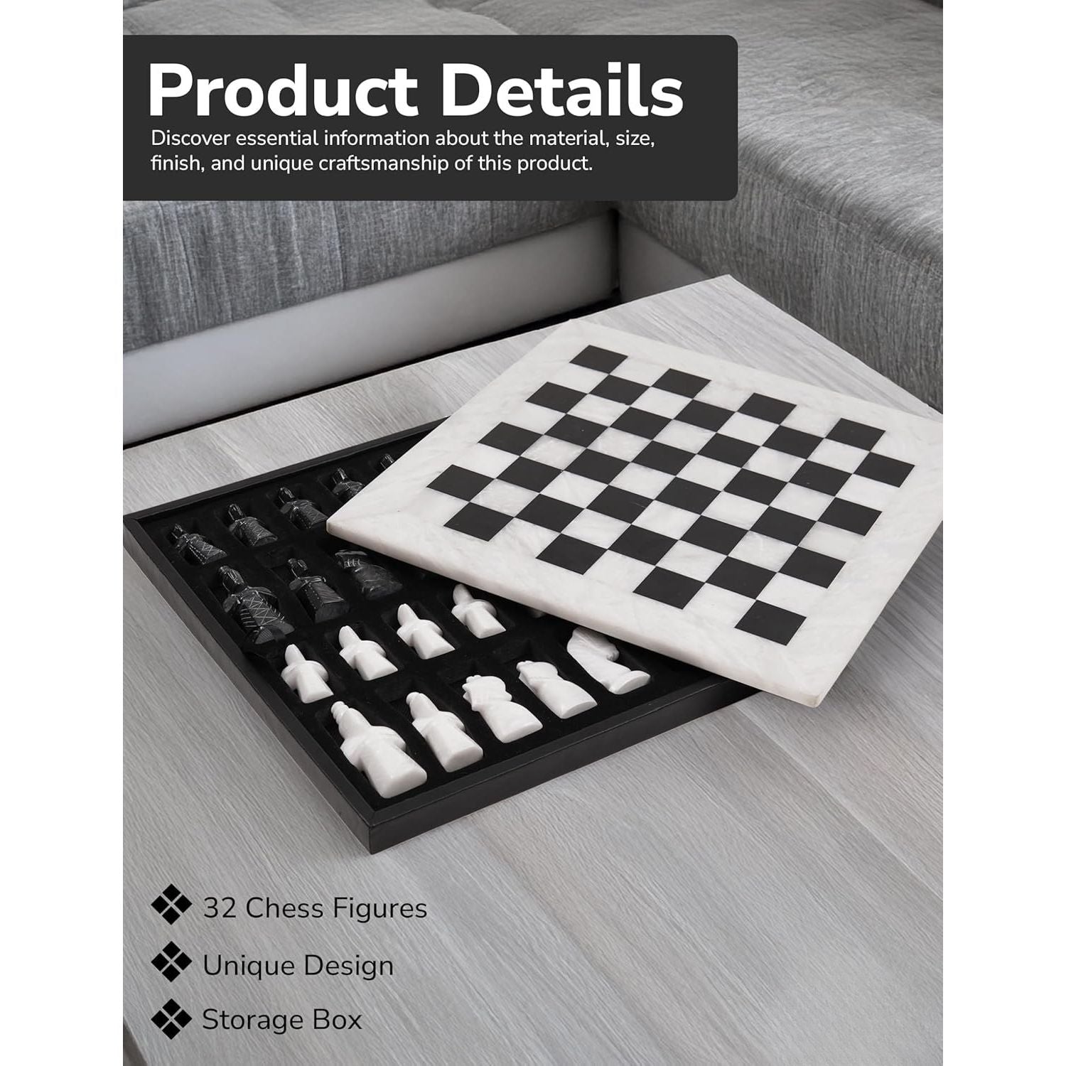 Antique Marble Chess Set 15" Inch White and Black with Storage Chess Board Game