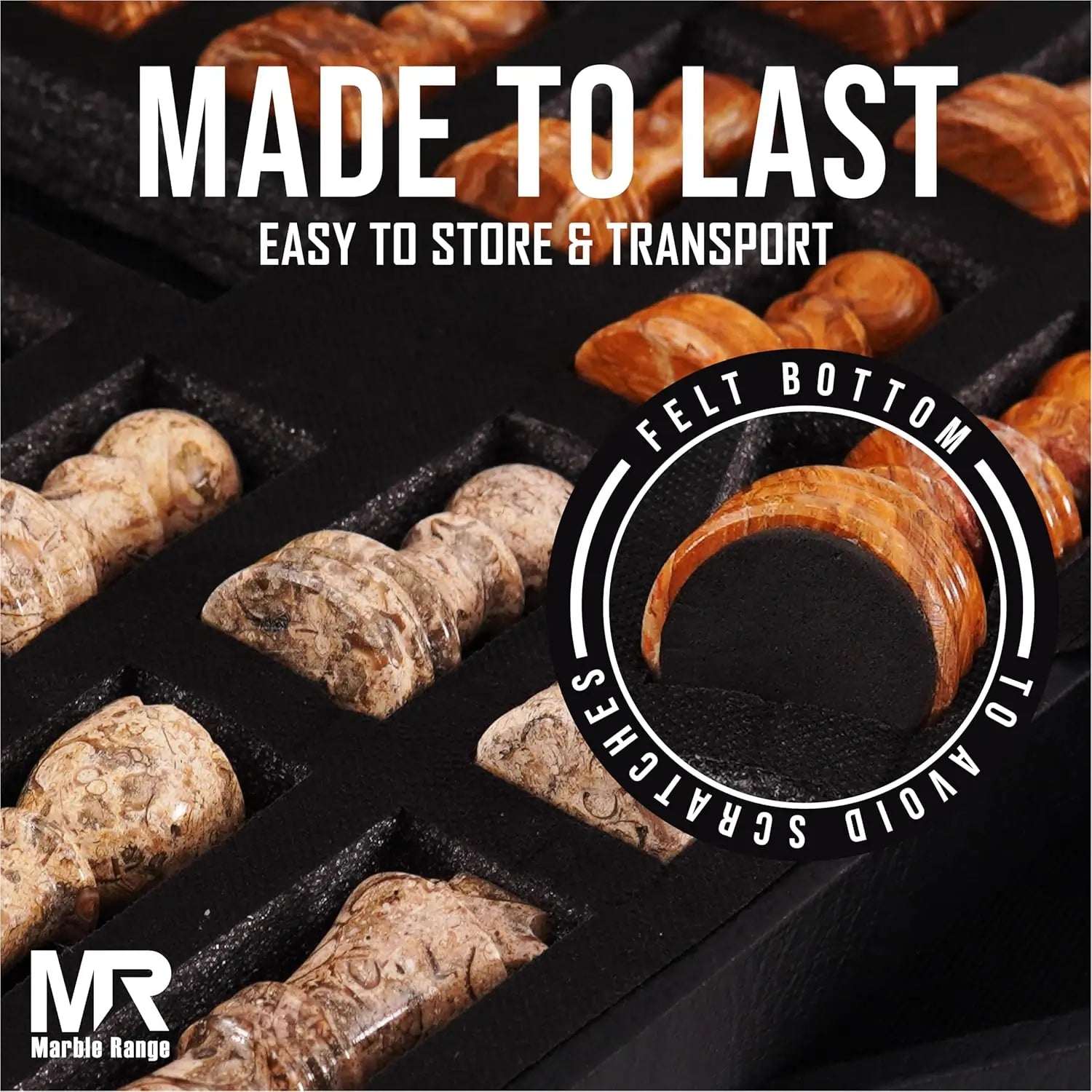 - Includes everything you need: 1 x marble chess board, 32 x chess pieces, plus 2 extra queens for advanced gameplay. You’ll receive 2 Kings, 2 Queens, 4 Knights, 4 Bishops, 4 Rooks, and 16 Pawns — all stored safely in a Marble Range branded storage box with secure fragile packaging.