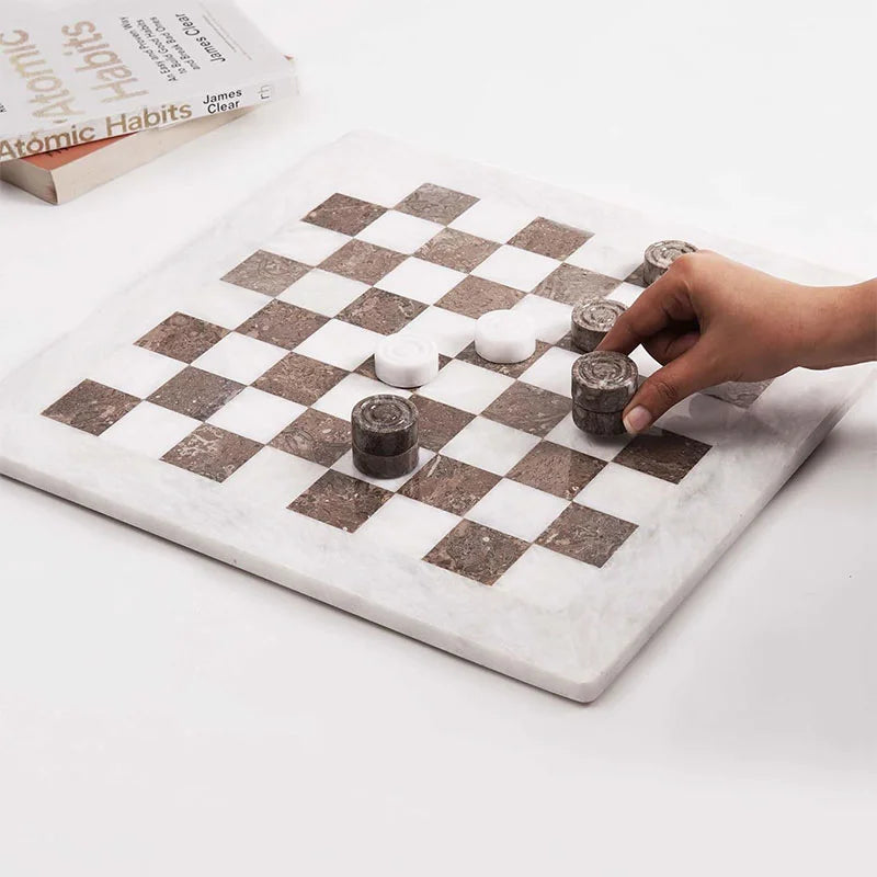 Marble Checker Set 15" Inch White and Oceanic Handmade Board Game