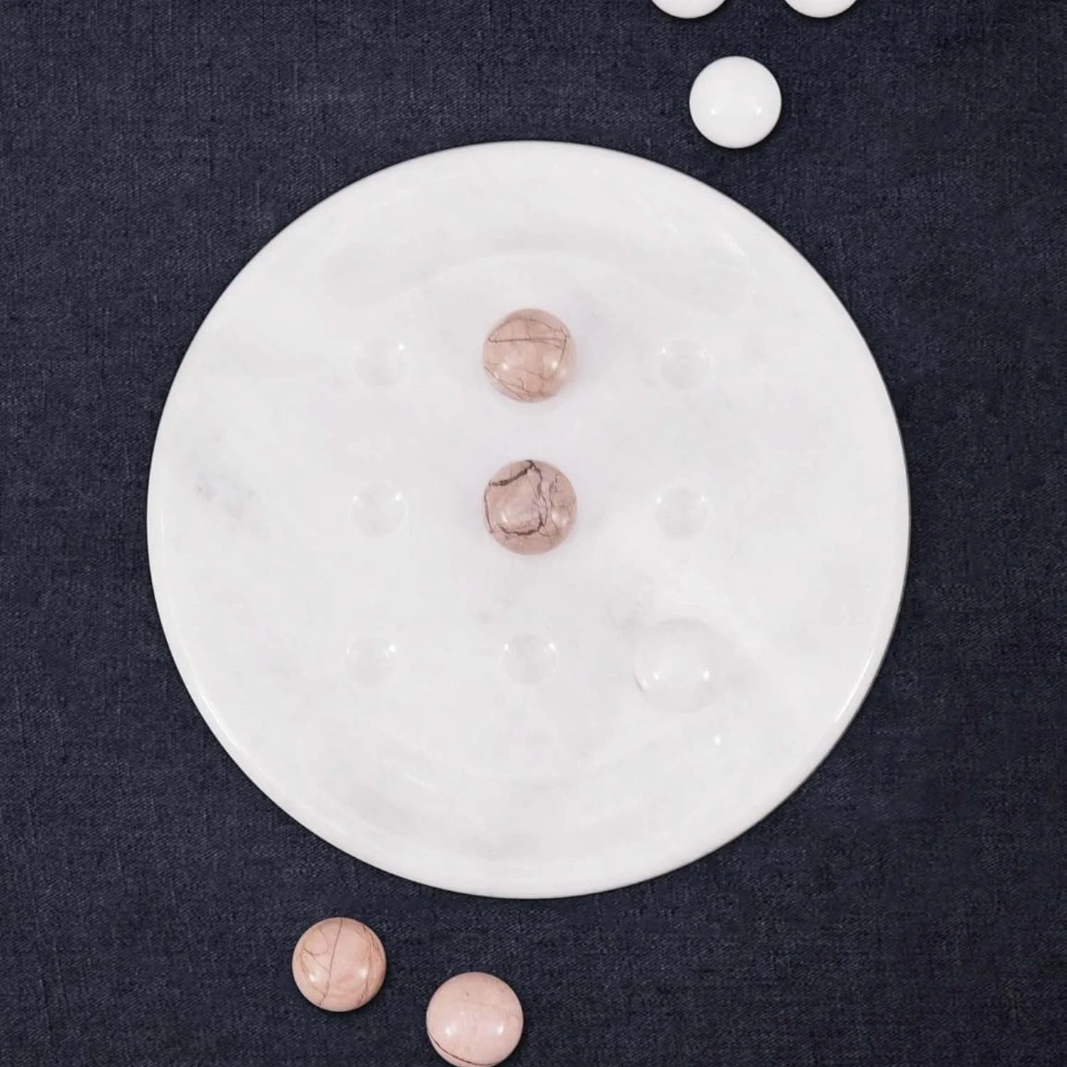 Marble Tic Tac Toe 10 Inch White and Marinara Handmade Board Game